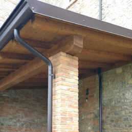 L’intervento ha previsto l’utilizzo del tipico sasso colorato della zona per la realizzazione dei muri esterni, con una stuccatura accurata e tonalizzata per mantenere un risultato estetico armonioso e fedele alla tradizione locale.